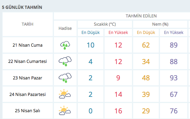 TÜRKİYE baharı beklerken soğuk havaya kapıldı. Öyle ki 23 Nisan bayramında bazı bölgelerde kar bile görülecek. İstanbul, Edirne, Kırklareli, Sakarya, Kocaeli, Balıkesir, Çanakkale ve Bursa gibi batı illerinden başlayan soğuk ve yağışlı hava dalgası haftasonu tüm yurdu etkiliyor. Son hava durumu raporunu yayınlayan mgm Ankara, Afyonkarahisar, Eskişehir, Uşak, Konya, Samsun ve Amasya çevreleri için alarm verdi.