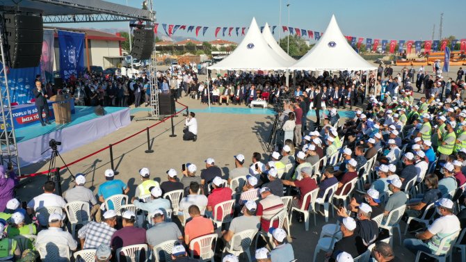 Konuşmaların ardından Büyükşehir Belediye Başkanı Alinur Aktaş, Hak İş Konfederasyonu Genel Başkanı Mahmut Arslan, Öz Güven Sen Genel Başkanı Ömer Yılmaz, AK Parti Genel Başkan Yardımcısı Ahmet Zenbilci, Hizmet-İş Sendikası Bursa Şube Başkanı Mustafa Yavuz arasında toplu iş sözleşmesi imzalandı. Başkan Aktaş, ‘Ya Allah Bismillah’ sözleriyle imza attı. Mahmut Arslan, günün anısına Başkan Aktaş’a adına dikilen fidanın sertifikasını takdim etti.
