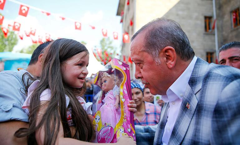 Erdoğan, kendisine seslenen Örenç'i yanına çağırarak bir süre sohbet etti, oyuncak hediye etti