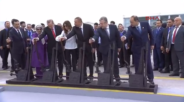 Açılış töreninde konuşan Erdoğan, ''Bugün içinde bulunduğumuz dönemden dolayı istikbalimiz için önemli adımlar atıyoruz. Kararlılığımızın ve vizyonumuzun ortak kararı olan bu proje çok önemli. Bu proje zahmetle yapıldığı için çık kıymetlidir. Bizler dünyanın kalbi olan son derece stratejik bir coğrafyada yaşıyoruz. Böyle bir hattın bölgemize getirisi sadece ekonomik olmayacaktır. Proje, siyasi olarak barış, güvenlik, istikrar ve sosyal olarak refah getirecek, yük ve insan hareketliliği yanında bilgi hareketliliğiyle de ülkelerimizin beşeri gelişimine katkı sağlayacaktır.'' dedi.