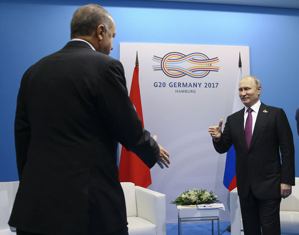 Erdoğan ve Putin'in Hamburg Messe Konferans Merkezi'nde gerçekleşen görüşmesinde, Türk heyetinde Başbakan Yardımcısı Mehmet Şimşek, Dışişleri Bakanı Mevlüt Çavuşoğlu, Ekonomi Bakanı Nihat Zeybekci, Enerji ve Tabii Kaynaklar Bakanı Berat Albayrak, MİT Müsteşarı Hakan Fidan ile Cumhurbaşkanlığı Genel Sekreter Yardımcısı ve Sözcüsü İbrahim Kalın da yer aldı.