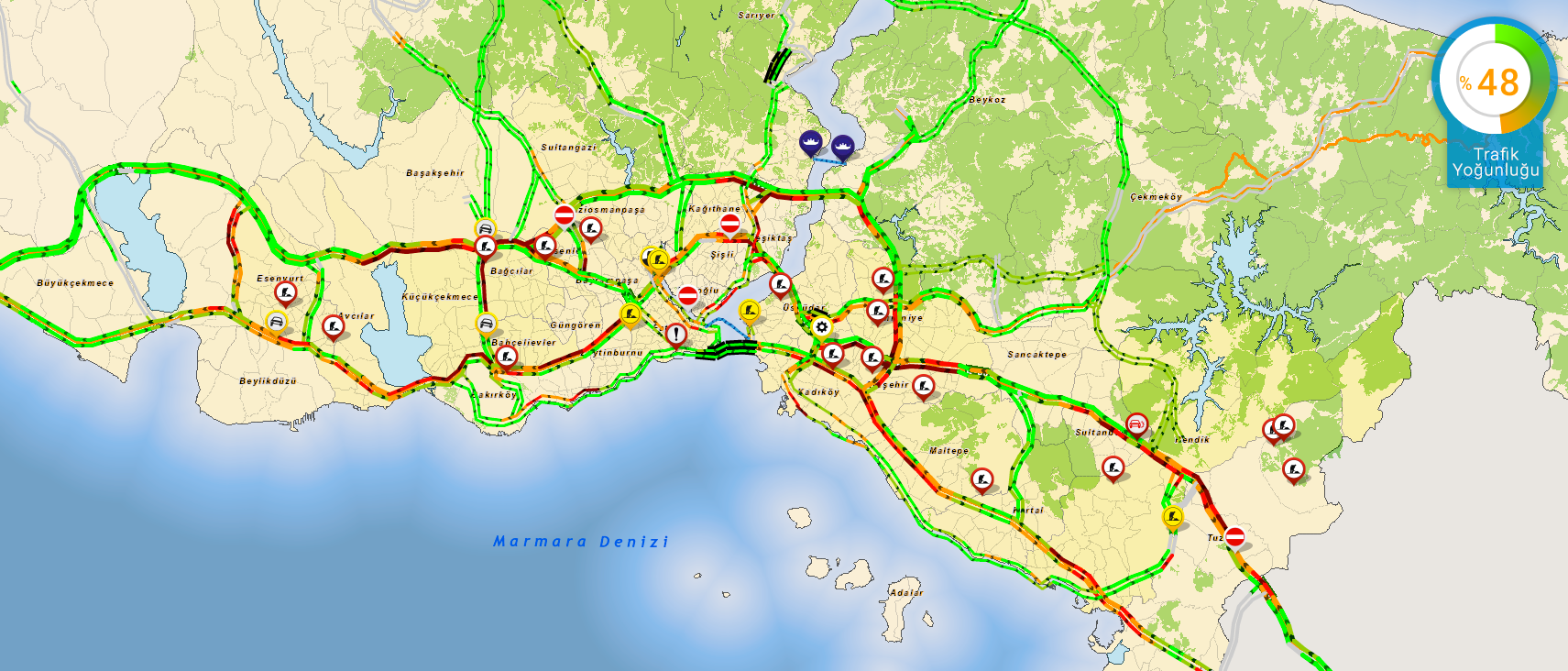 İSTANBUL'da trafik yoğunluğu ne durumda? İstanbul'da son yol durumu ne? İstanbul'da trafik yoğunluğu haritası gittikçe kırmızılaşıyor. İstanbul'da Kurban Bayramı yoğunluğu kentin çıkış noktalarında kendini hissettirmeye başladı. İstanbul Otogarı giriş ve çıkışları akşam saatleri itibariyle yoğunlaşmaya başladı. Atatürk Havalimanı'nda ise yoğunluğun rekor seviyelere ulaşması bekleniyor.