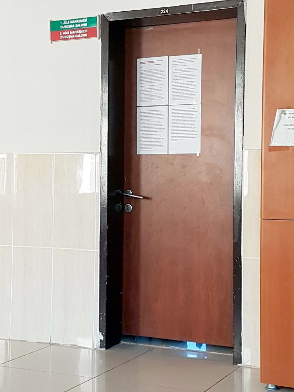 Duruşma salonunun kapısına asılan 4 sayfalık yazı, boşanmak üzere mahkemeye gelen çiftlerin ilgisini çekerken, yazının asılmasının ardından boşanma davalarını çeken çiftler oldu.