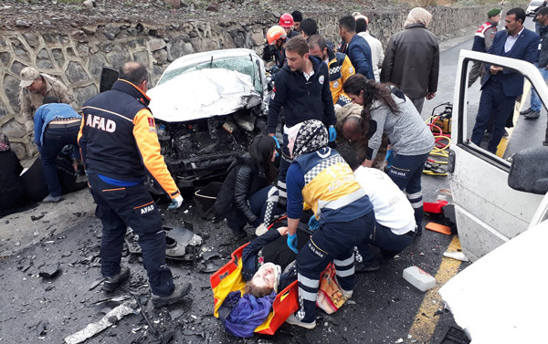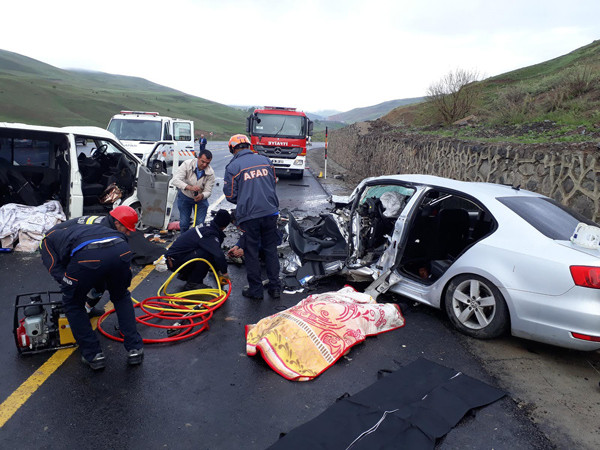 ERZURUM'da, otomobille, panelvan tipi aracın çarpışmasıyla meydana gelen kazada 5 kişi öldü, 10 kişi yaralandı.