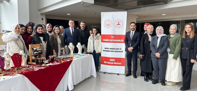 Pendik SYDV Aile Destek Merkezi (ADEM) kursiyerleri tarafından, Halk Eğitim Merkezi iş birliğiyle açılan kurslarda üretilen el emeği ürünlerin sergilendiği Neomarin AVM’deki standı ziyaret eden Kaymakam Mehmet Yıldız, kursiyerlerle bir araya gelerek birbirinden güzel el emeği göz nuru eserleri ürünleri inceledi.