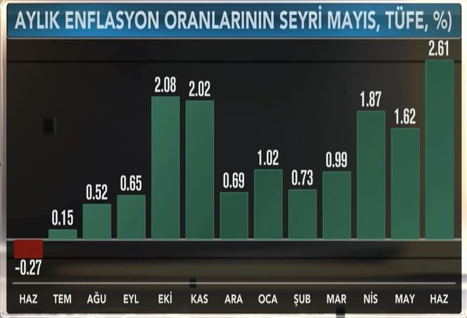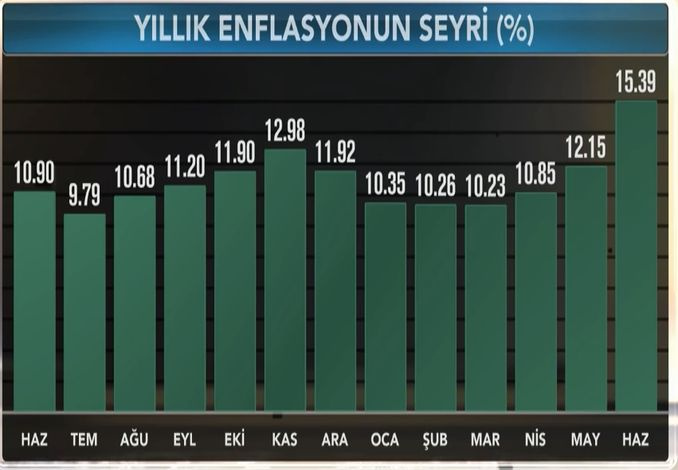 ENFLASYON RAKAMLARI : TÜFE aylık % 2.61, yıllık % 15.39 arttı. Yıllık enflasyon 2003'ten beri en yüksek seviye olarak kayda geçti. Aylık artış da Ekim 2011'den beri en yüksek seviye oldu. Enflasyon son olarak 2017'nin Kasım ayında yıllık bazda yüzde 12.98 ile 14 yılın rekorunu kırmıştı. Çekirdek enflasyon da %12.6'dan %14.6'a yükseldi ve tarihin en yüksek seviyesine çıktı.