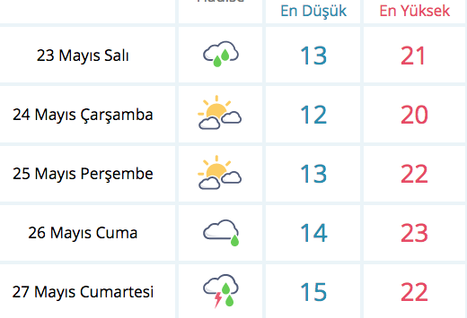 İSTANBUL 5 GÜNLÜK HAVA DURUMU