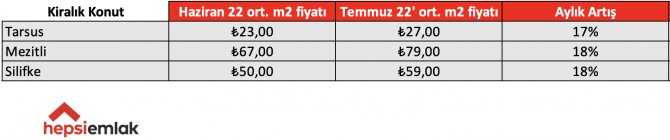 Haziran ayında kiralık konut m2 fiyatı en fazla artış gösteren il olan Kocaeli, Temmuz ayında da yüzde 13 oranıyla ilk sırada yer aldı. Yüzde 10 oranıyla Mersin ve İstanbul ikinci sırada yer alırken, yüzde 8 artışla Adana listeye üçüncü sıradan girdi. Türkiye genelinde 2021 yılının aynı dönemine göre kira oranları karşılaştırıldığında ise kiralık konutlarda yıllık en fazla yükselişi yüzde 256 oranla Tekirdağ oldu. Tekirdağ’ı yüzde 219 ile Kocaeli, yüzde 185 ile Mersin, yüzde 183 ile de Ankara ve Antalya takip etti.