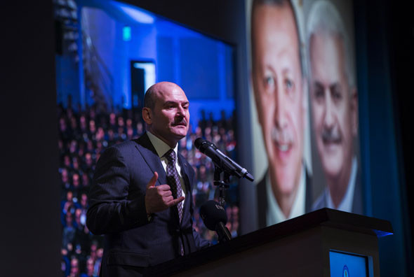 Bakanlık olarak ülkemize yönelik tehditleri doğru tarif etmek ve bunun bileşenlerine odaklanmak durumunda olduklarını belirten Soylu, "Basit bir değerlendirme yapmak gerekirse, bütün kara sınırlarımızın yaklaşık yüzde 44'ünü oluşturan iki ülkede, bugün, güvenlik açısından devlet otoritesi yok mesabesindedir. Dolayısıyla bu coğrafyalarda son birkaç yıldır ortaya çıkan iç savaş, terör, DEAŞ tehdidi, PYD faaliyetleri gibi bütün olumsuzluklarla ilgili sınırlarımızda ciddi bir baskı var ve bunu tek başına göğüslemekle mükellefiz. Buradan uyuşturucu, terörist, kaçakçı, düzensiz göçmen gibi kamu düzenimizi tehdit eden her türlü unsurun ülkemiz içine yönelmesi söz konusudur." dedi.