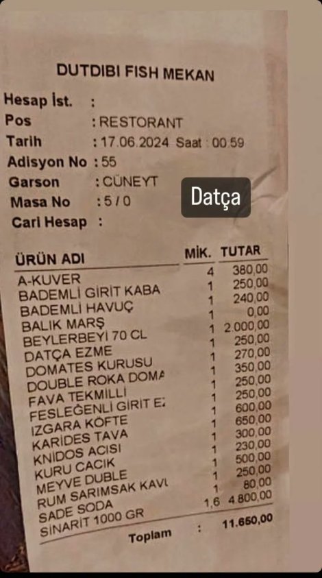 X platformunda paylaşımda bulunan Şahin, "Bu iş artık kabak tadı verdi. 250 liraya kabak- havuç mezesi yersen 11.800 lira hesap ödemeyi sorun yapmaman lazım. Millet 250 liraya bir öğün yemek yiyor. Adamlar tatil yörelerinde mükellef çilingir sofrası kurup gelen hesaplara sitem ediyor!" dedi. Kaynak:İnternethaber.com
